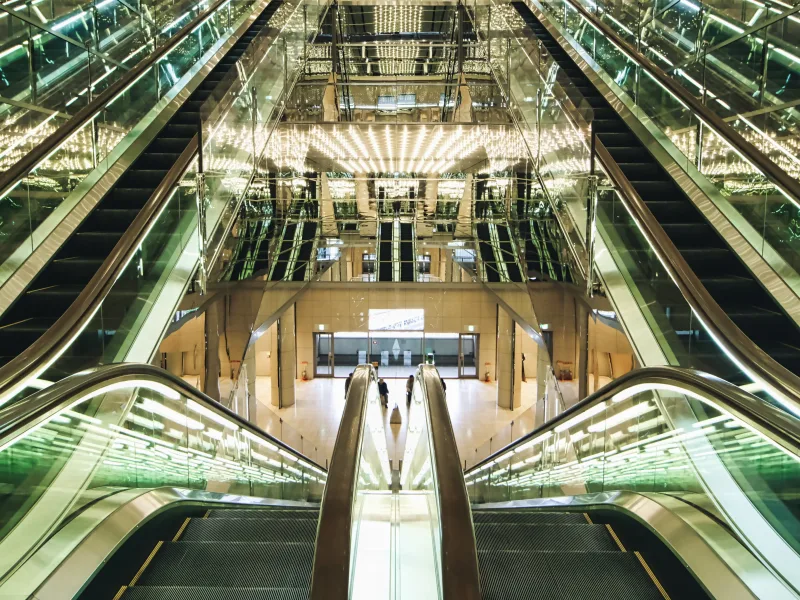 For those exploring the city with a camera in hand, this stairwell-escalator hybrid offers an ideal canvas. From below, the upward spiral forms a powerful vortex of perspective; from above, the descending curves echo motifs found in sci-fi films and anime. The lighting is subdued yet purposeful, highlighting the glossy surfaces and steel framework without washing out detail. It’s a prime example of how Tokyo transforms utilitarian spaces into immersive visual environments, perfect for wide-angle shots or dramatic portraits with a graphic edge.